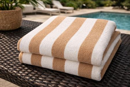 Le drap de piscine rayé noisette Deren, confort et élégance